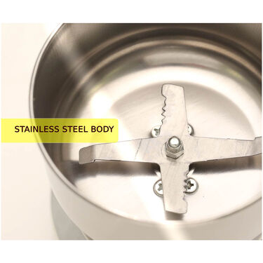 Product Name: Portable Electric Grinder Package Contains: 1 Item Material: Others Color: Colour as per availability Additional Information: This grinder can be used for grinding Dry masala like , black pepper, dhaniya, red chilli, Green chutney, Nariyal Chutney, mix dry masala, etc. Its compact and portable making it easy to travel with anywhere if required. It comes with a 200 W motor. Weight: 380